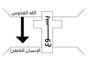 مكتوب في الكتاب”لأَنَّ أُجْرَةَ الْخَطِيئَةِ هِيَ الْمَوْتُ” (رومية 23:6) والموت هنا يعني انفصال الإنسان روحيا عن الله. ومع أننا لربما نحاول أن نصل ونتقرب إلى الله القدوس من خلال مساعينا الخاصة، لكننا سنفشل حتماً. نحن لا نستطيع أن نكون أبرارًا بما فيه الكفاية. هذا الشكل يرينا الفجوة العظيمة التي توجد بيننا وبين الله القدوس. والسهام توضح لنا بأننا نحاول دائماً أن نتقرب إلى الله ونجد حياة ذات مغزى من خلال مساعينا الخاصة. ولربما نحاول أن نعمل أعمالاً صالحة أو نتبنى توجه فلسفي جديد لكننا سنفشل حتماً. والمبدأ الثالث يوضح الطريق الوحيد لسد هذه الفجوة والحل الوحيد للتصالح مع الله